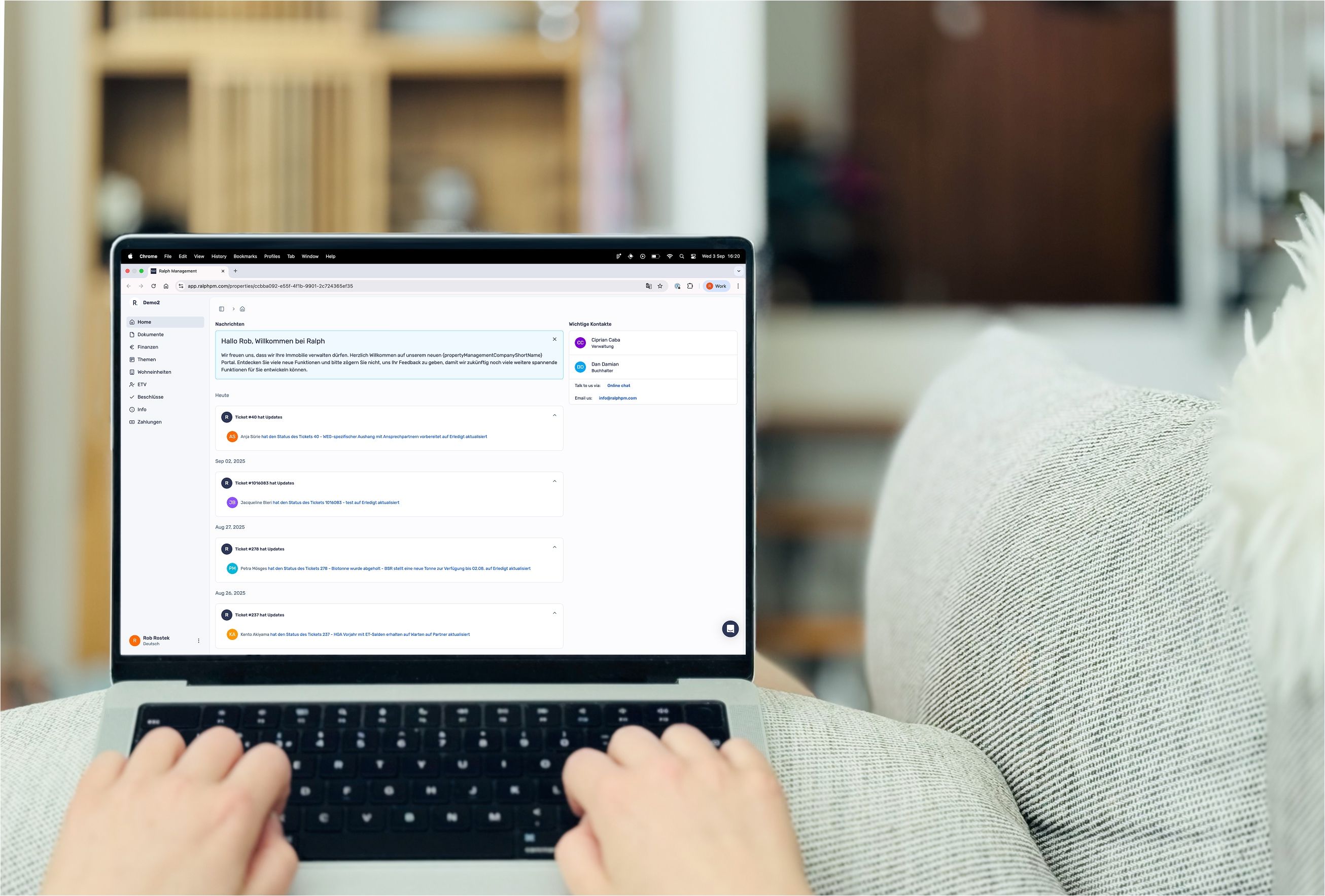Ralph ist eine Hausverwaltung, keine Software. Jedes Objekt hat einen zertifizierten, persönlichen Ansprechpartner. Wir sind telefonisch erreichbar und verschicken Briefe. Nur ein Fax haben wir nicht mehr. Wir haben zudem unsere eigene Software entwickelt, um die Prozesse möglichst optimal effizient zu gestalten und unseren Verwaltern den Rücken freizuhalten.